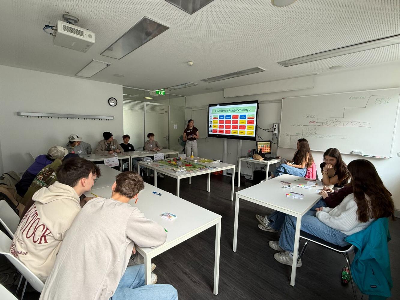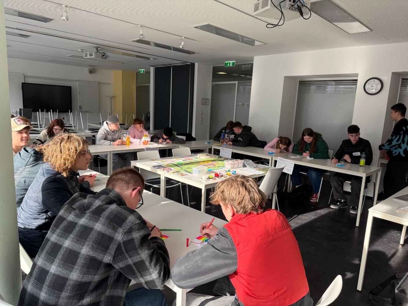 Alle Klassen der PTS Niederndorf durften in der AK in Kufstein am Planspiel "Wirtschaft" teilnehmen. Im fünfstündigen Planspiel erlebten die Schüler:innen wirtschaftliche Abläufe aus nächster Nähe. In Teams übernahmen sie verschiedene Rollen, trafen Entscheidungen und lernten so zentrale Zusammenhänge des Wirtschaftsgeschehens kennen. Statt Gewinnmaximierung standen faire Arbeitsbedingungen und verantwortungsvolles Handeln im Mittelpunkt.