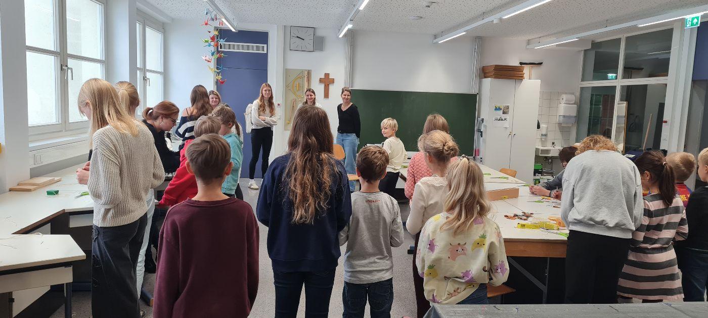 Die Kinder konnten verschiedene Unterrichtsstunden miterleben und selbst aktiv werden: In der Turnhalle wurde geturnt und geklettert, in der Bibliothek gab es spannende Einblicke in unsere Lese- und Medienwelt und die Theatergruppe präsentierte ihre kreative Arbeit. Außerdem stellten die Kinder einen eigenen Schlüsselanhänger her, den sie als Erinnerung mit nach Hause nehmen konnten.