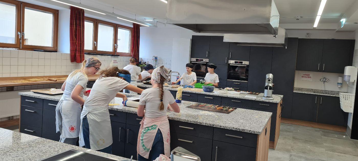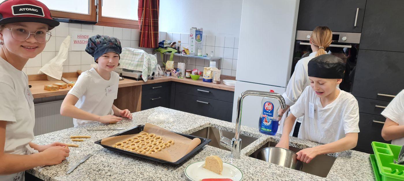 Im Rahmen des Ernährungs- und Haushaltsunterrichts haben sich fleißige Bäckerinnen und Bäcker aus den 3. Klassen unter der fachkundigen Anleitung von Frau Mauracher in wahre Backmeister verwandelt.