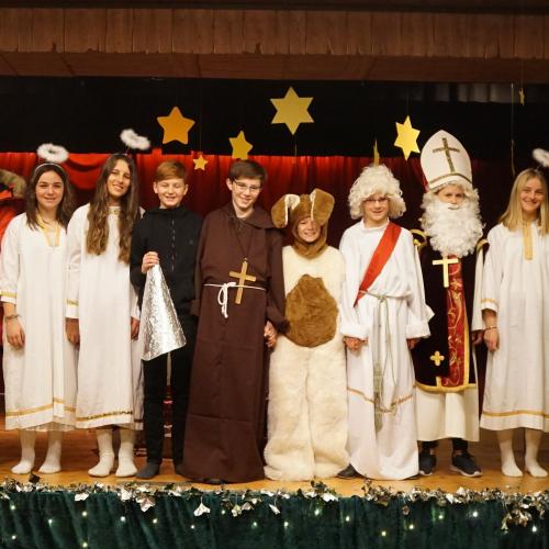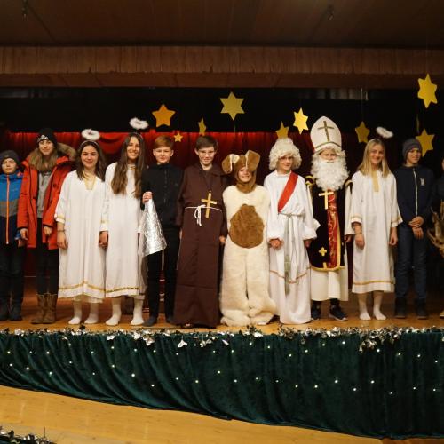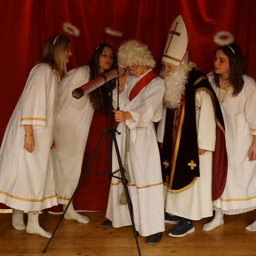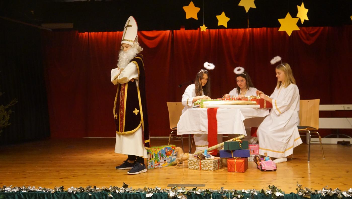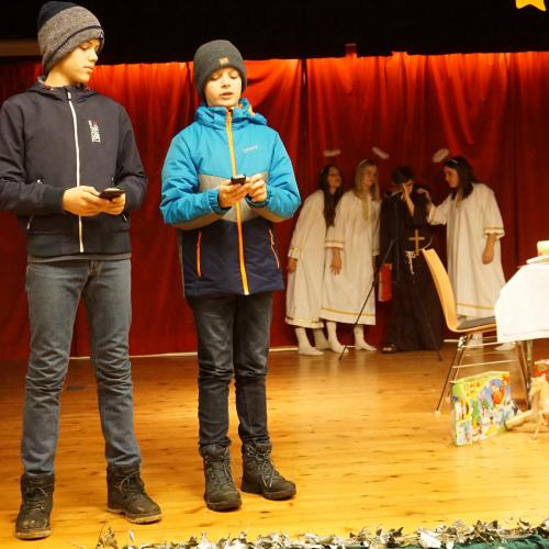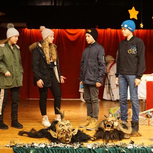 Unsere Theatergruppe unter der Leitung von Brigitte Luksch und Peter Esterl führt wieder ein passendes Weihnachtsstück auf. Als Zuschauer dürfen wir alle Schülerinnen und Schüler der umliegenden Volksschulen und selbstverständlich auch die MS-Schüler begrüßen. Hinreißend gespielt! Der Applaus zeigt, dass es allen gefallen hat.